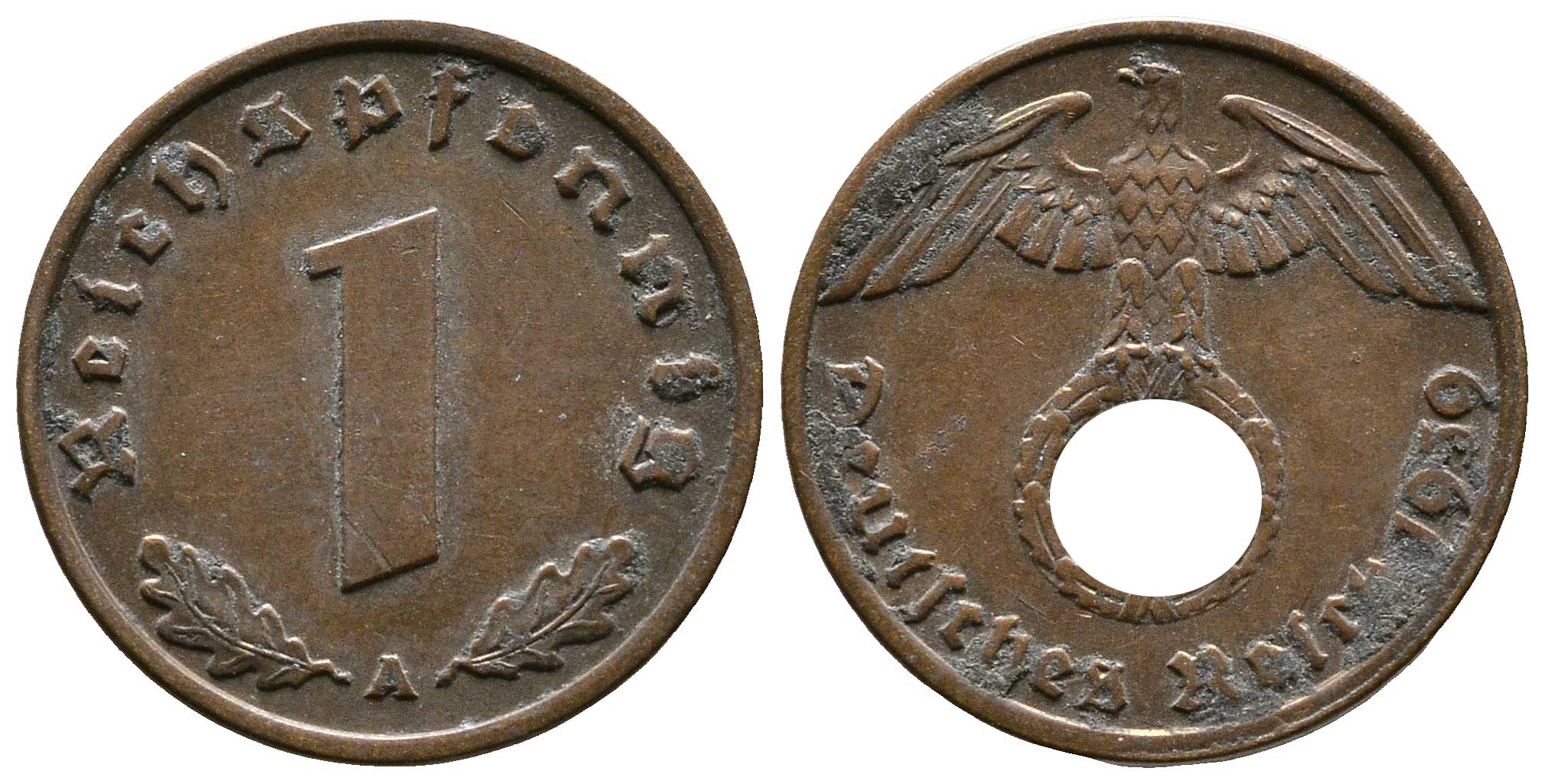 Германия 1 рейхспфенниг 1939 A KM 89, J. 361 бронза 220-355
