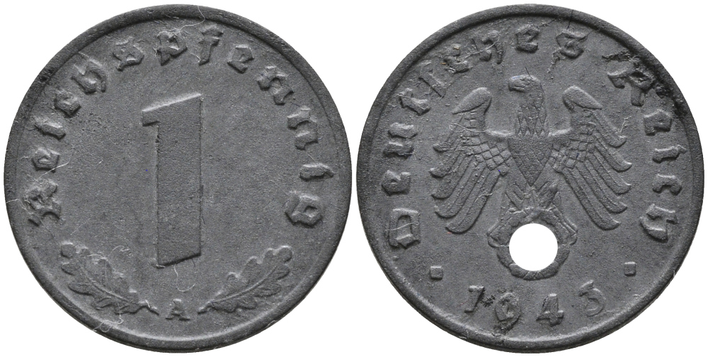 ГЕРМАНИЯ 1 РЕЙХСПФЕННИГ 1943 A KM 97, J.369 цинк 96-762