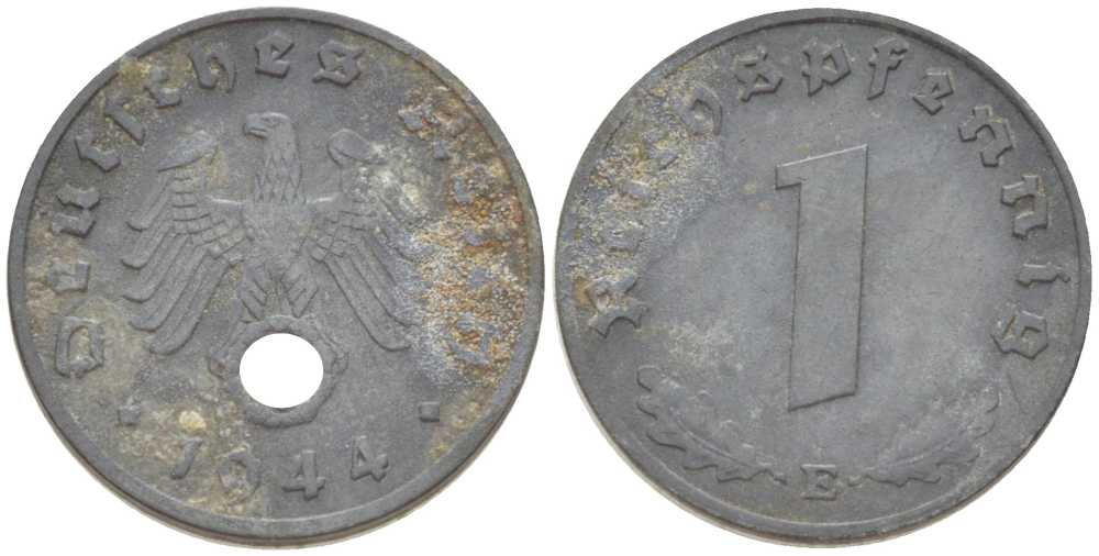 Германия 1 рейхспфенниг 1944 E KM 97, J. 369 цинк 211-556