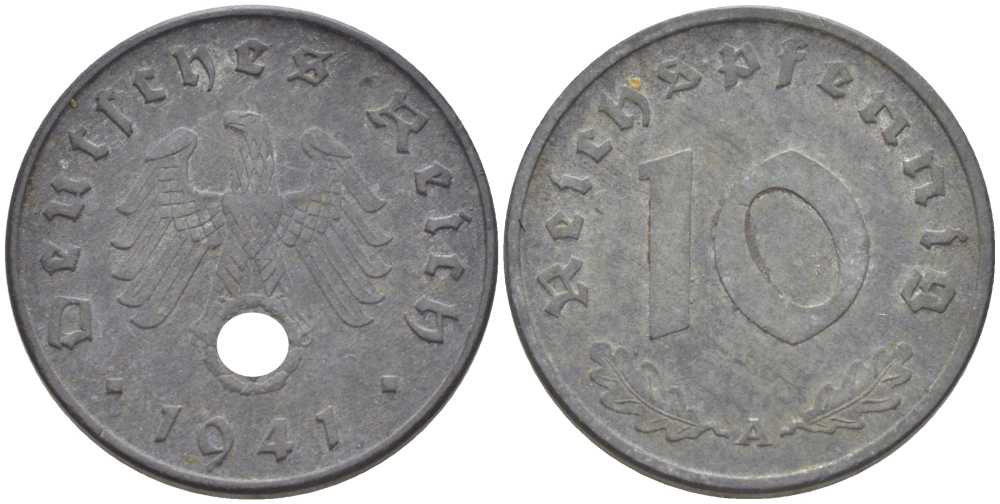 ГЕРМАНИЯ 10 РЕЙХСПФЕННИГОВ 1941 A KM 101, J. 371 цинк 212-821