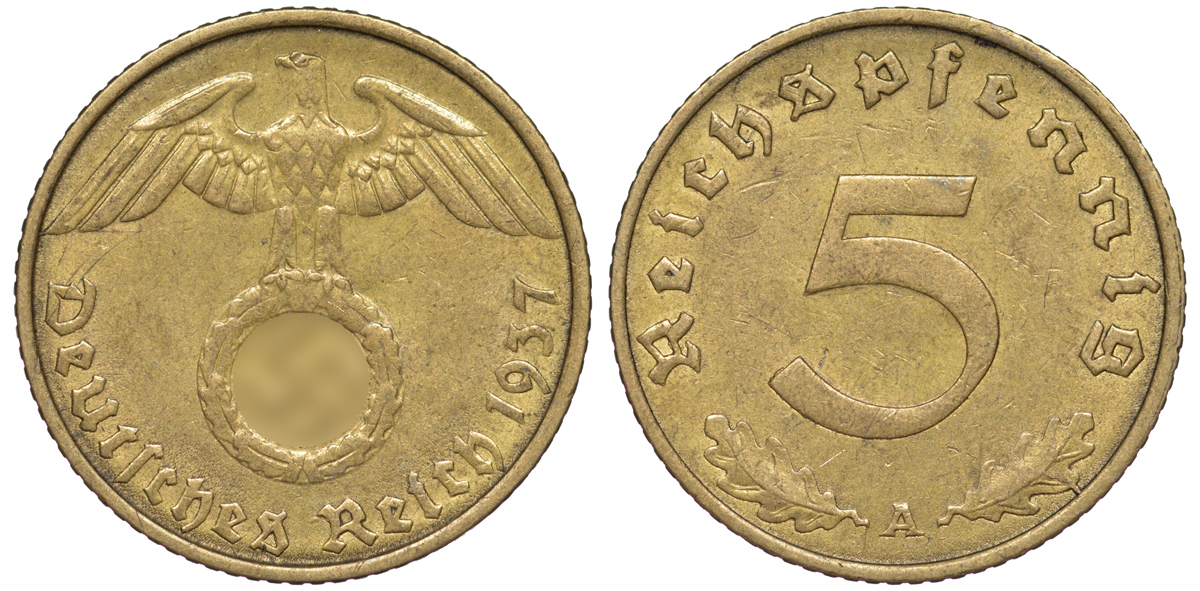 Германия 5 рейхспфеннигов 1937 A KM 91, J. 363 алюминиевая бронза 4602-1251