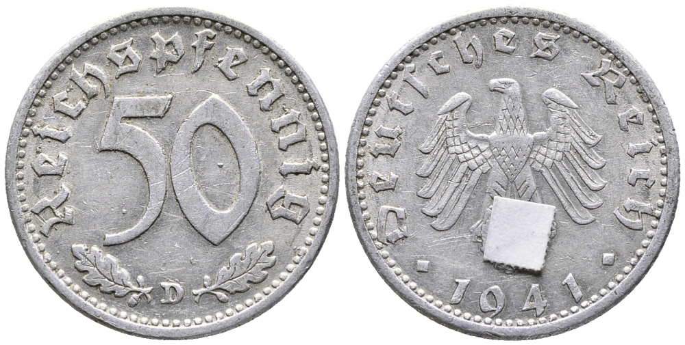 ГЕРМАНИЯ 50 РЕЙХСПФЕННИГОВ 1941 D KM 96, J. 372 алюминий 24-922