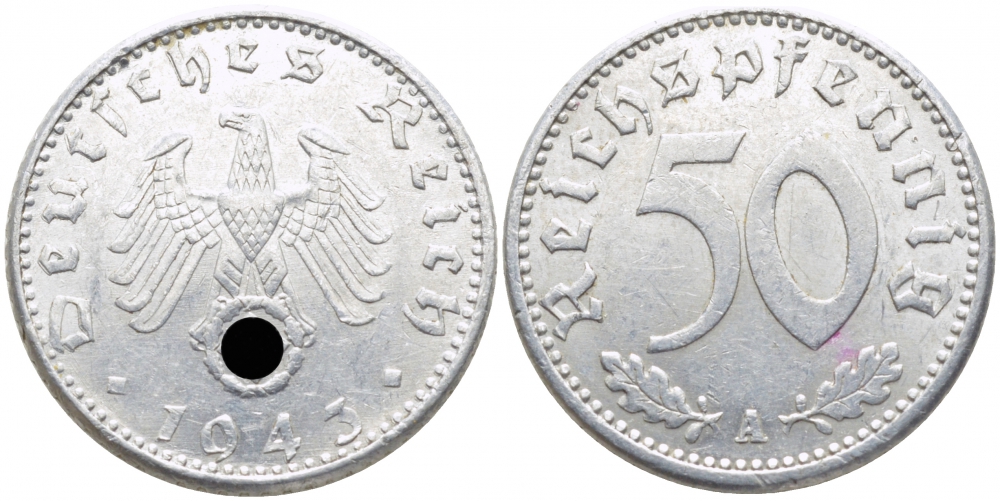 ГЕРМАНИЯ 50 РЕЙХСПФЕННИГОВ 1943 A KM 96 алюминий 3856-757