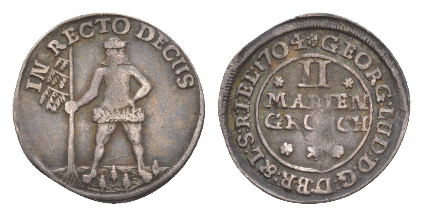 Брауншвейг-Каленберг-Ганновер 2 мариенгроша 1704 дикарь, Георг I (1698-1727), из коллекции Ричарда Б. Смита Welter 2202, KM 6 серебро 1525-743