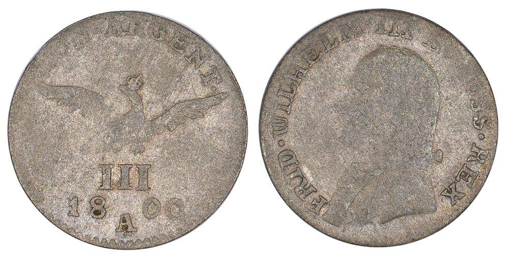 ПОЛЬША (ВОСТОЧНАЯ ПРУССИЯ) 3 ГРОША 1800 A, ФРИДРИХ ВИЛЬГЕЛЬМ III ПРУССКИЙ (1797-1840), МОНДВОР БЕРЛИН, Jg. 16, Olding 147, KM 60 серебро 00-00