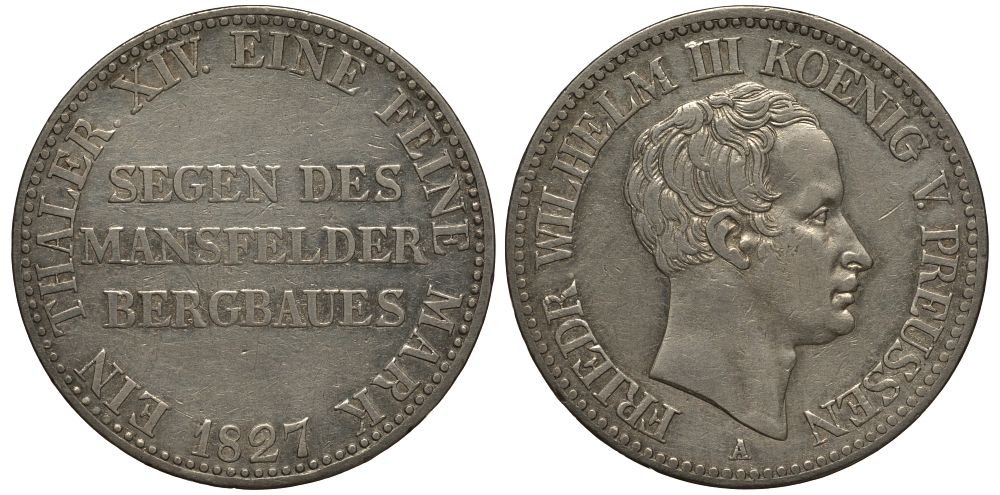 Пруссия 1 талер 1827 А, Фридрих Вильгельм III AKS 16, Dav. 761, Kahnt 368, Thun 248, KM 417 серебро 00-806-13