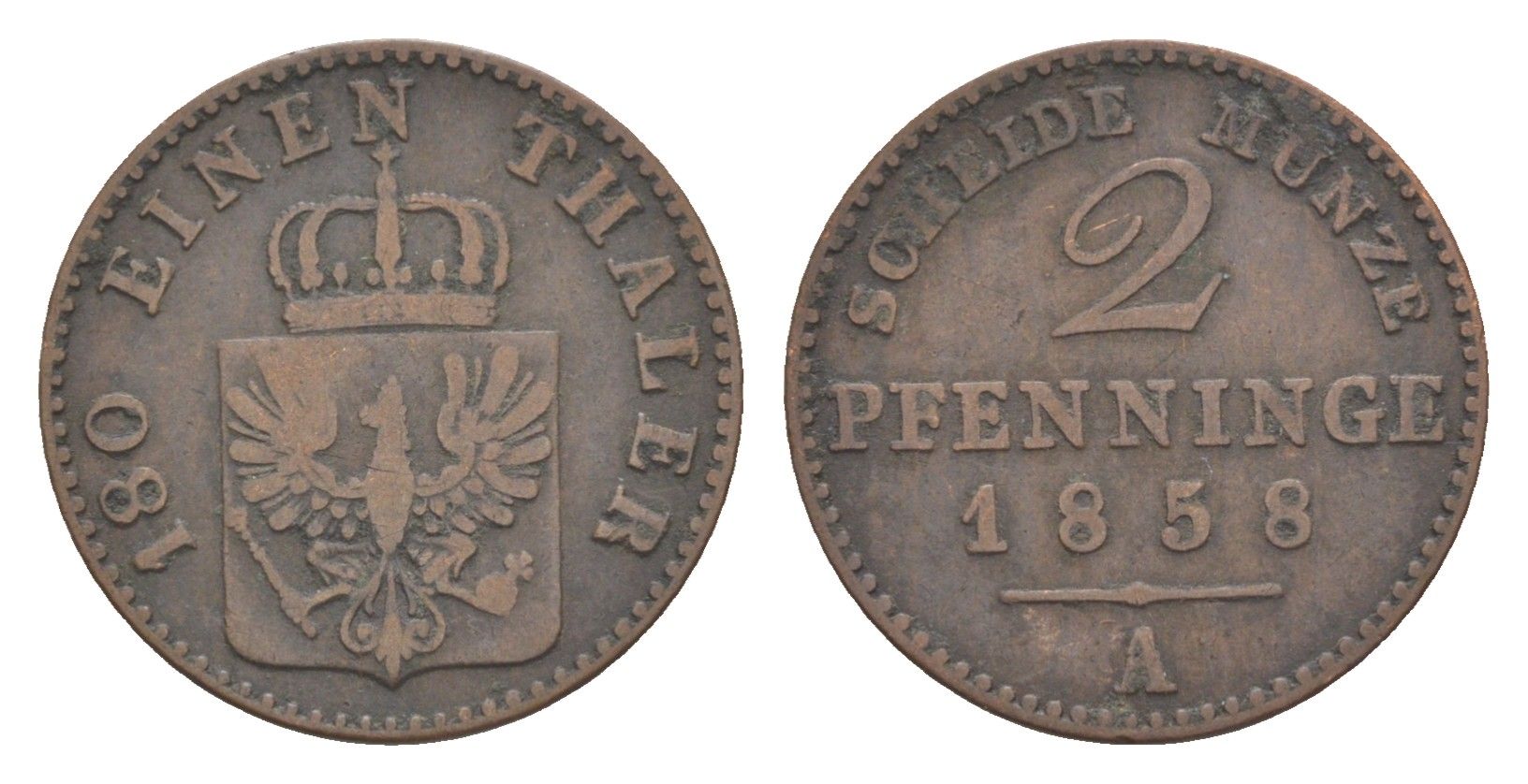 Пруссия 2 пфеннига 1858 A, Фридрих Вильгельм IV (1840-1861) KM 452, Jaeger 51, Olding 336, AKS 91 медь 4651-312