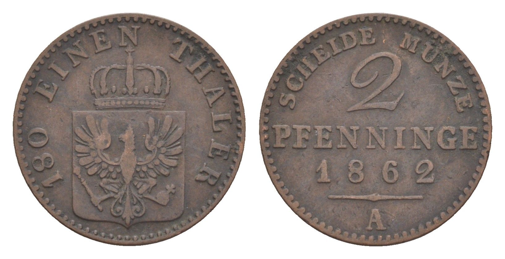 Пруссия 2 пфеннига 1862 A, Вильгельм I (1861-1888) KM 481, Jaeger 51, AKS 107, Olding 425 медь 4651-236