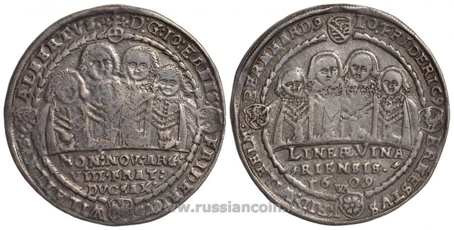 Саксен-Веймар 1 талер 1609 ахтбрюдерталер (талер восьми братьев) Dav. 7523 серебро 00-000-00