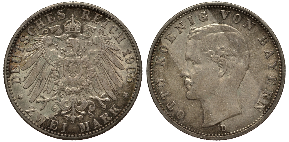 Бавария 2 марки 1905 Отто (1886-1913) Weege 44, J. 45, KM 511 серебро 3711-1831