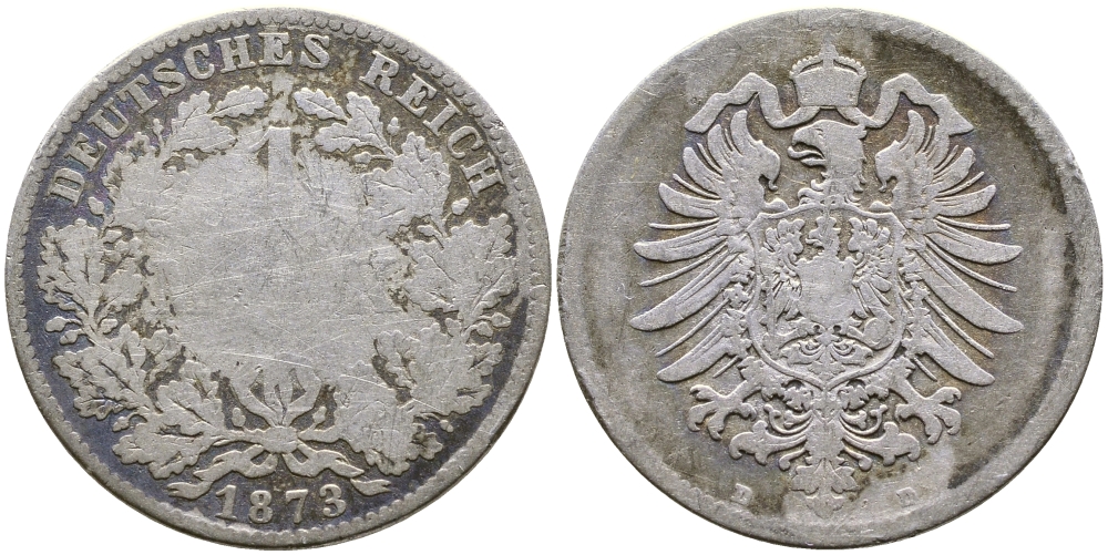 Германия 1 марка 1873 D, Weege 17, J. 9, KM 7 серебро 87-236