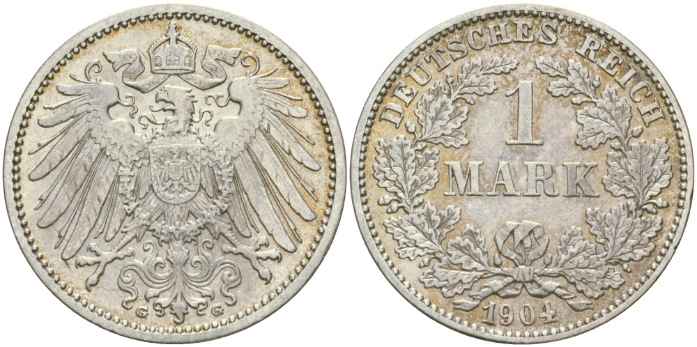 Германия 1 марка 1904 G Weege 18, J. 17, KM 14 серебро aUNC 413-5613