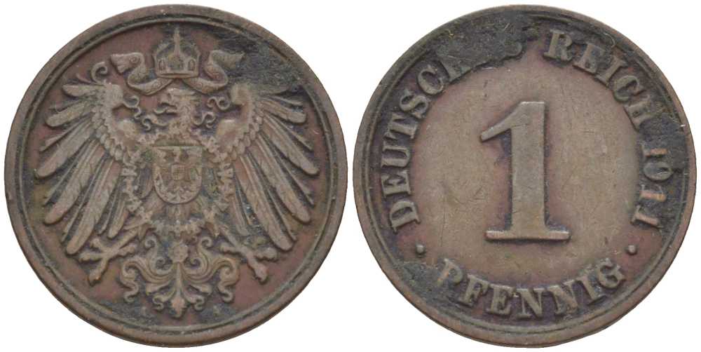 ГЕРМАНИЯ 1 ПФЕННИНГ 1911 А KM 10, J. 10 медь 201-939