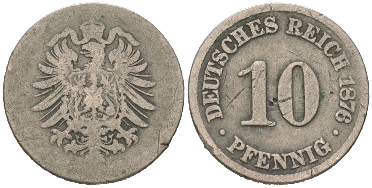 Германия 10 пфенингов 1876 Вильгельм I (1861-1888) KM 4 медно-никель 4529-432