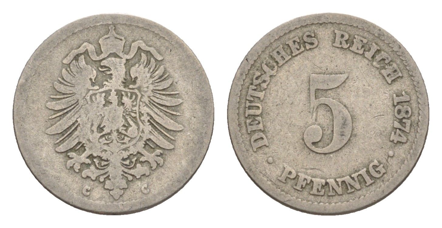 Германия 5 пфеннигов 1874 C, Вильгельм I (1871-1888) KM 3, J. 3, Weege 5 медно-никель 4639-1241