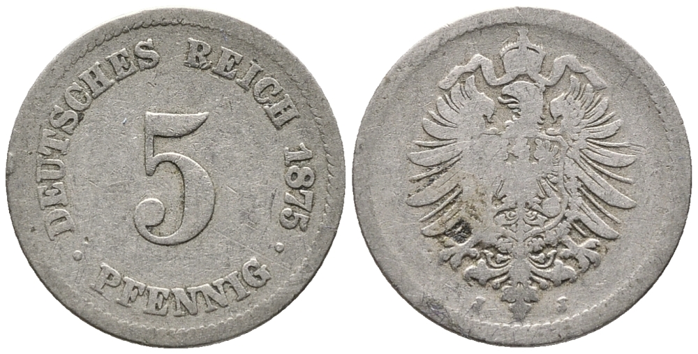 ГЕРМАНИЯ 5 ПФЕННИГОВ 1875 J, СТАРОГЕРБОВКА KM 3, J. 3 медно-никель 39-352