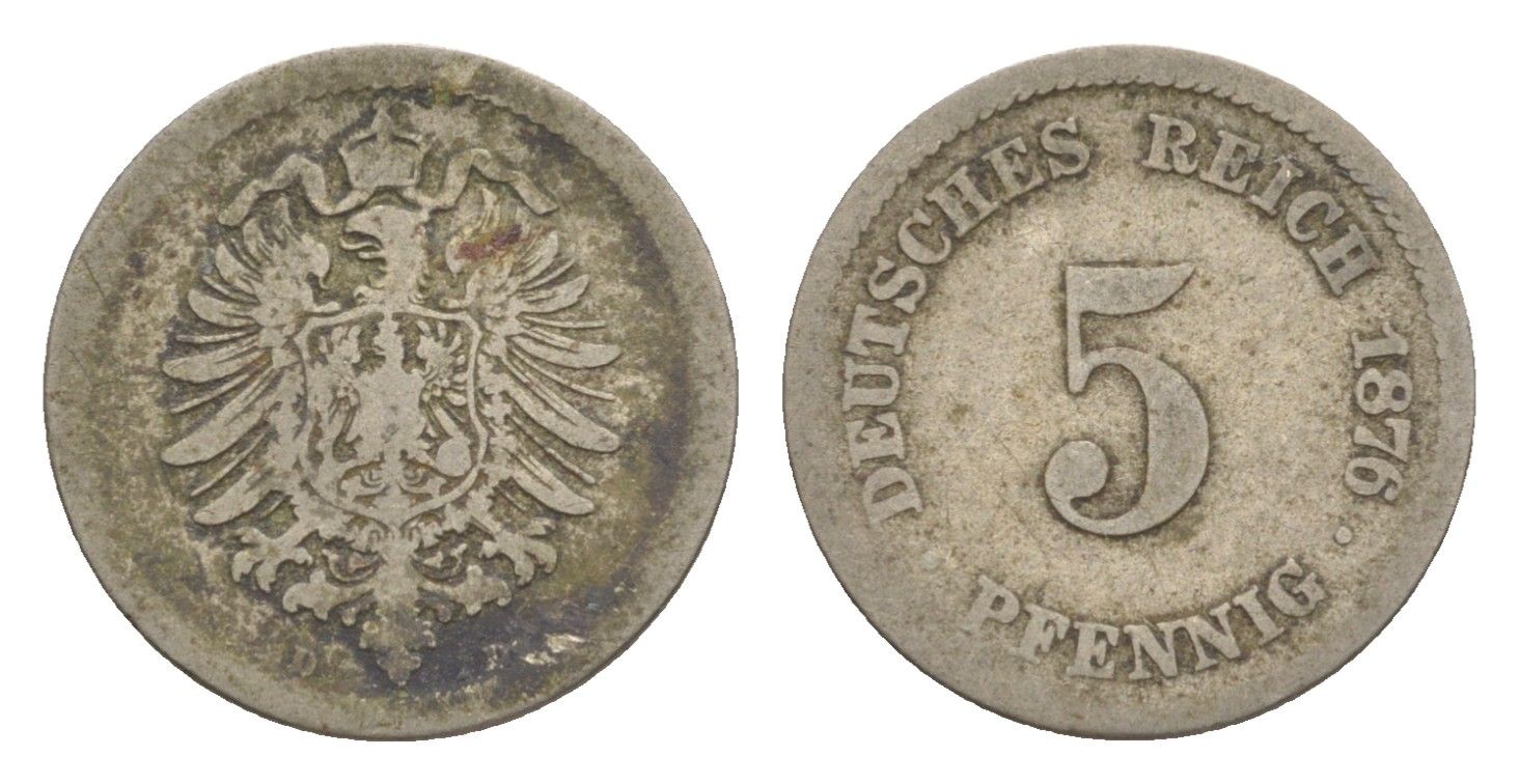 Германия 5 пфеннигов 1876 D, Вильгельм I (1871-1888) KM 3, J. 3, Weege 5 медно-никель 4639-1251