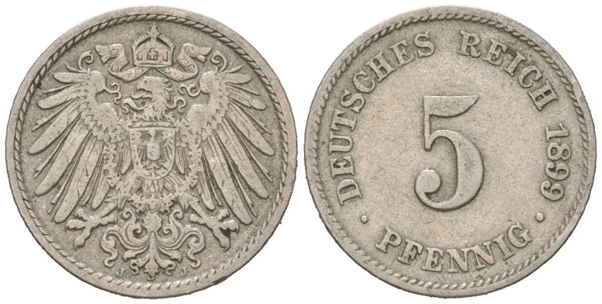 Германия 5 пфеннигов 1899 J, Вильгельм II (1888-1918) KM 11, J. 12 медно-никель 4615-732