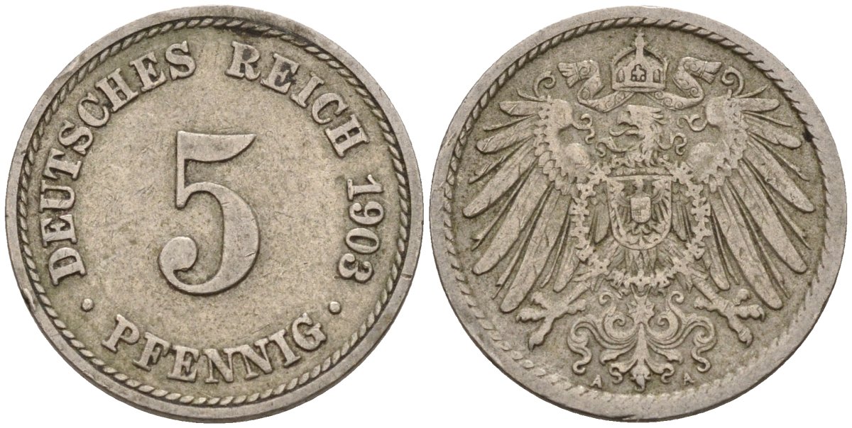 Германия 5 пфеннигов 1903 F KM 11, J. 12 медно-никель 4151-441