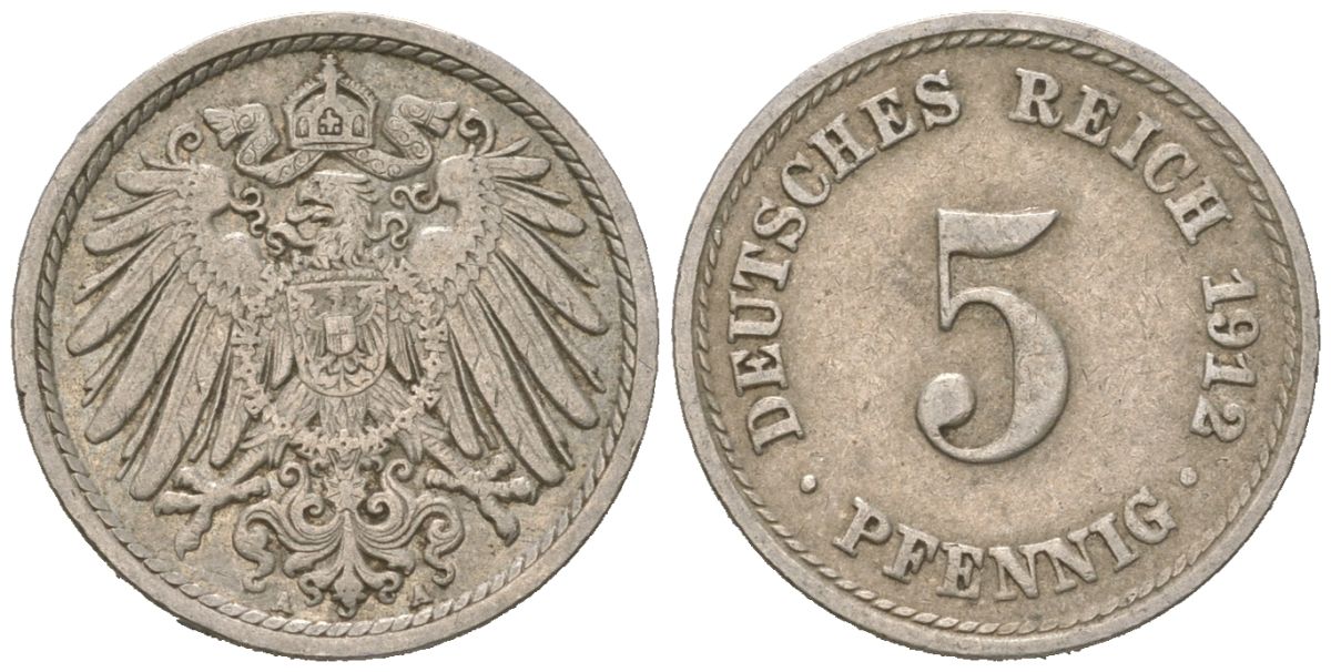 Германия 5 пфеннигов 1912 A, Вильгельм II (1888-1918) KM 11, J. 12 медно-никель 4615-737