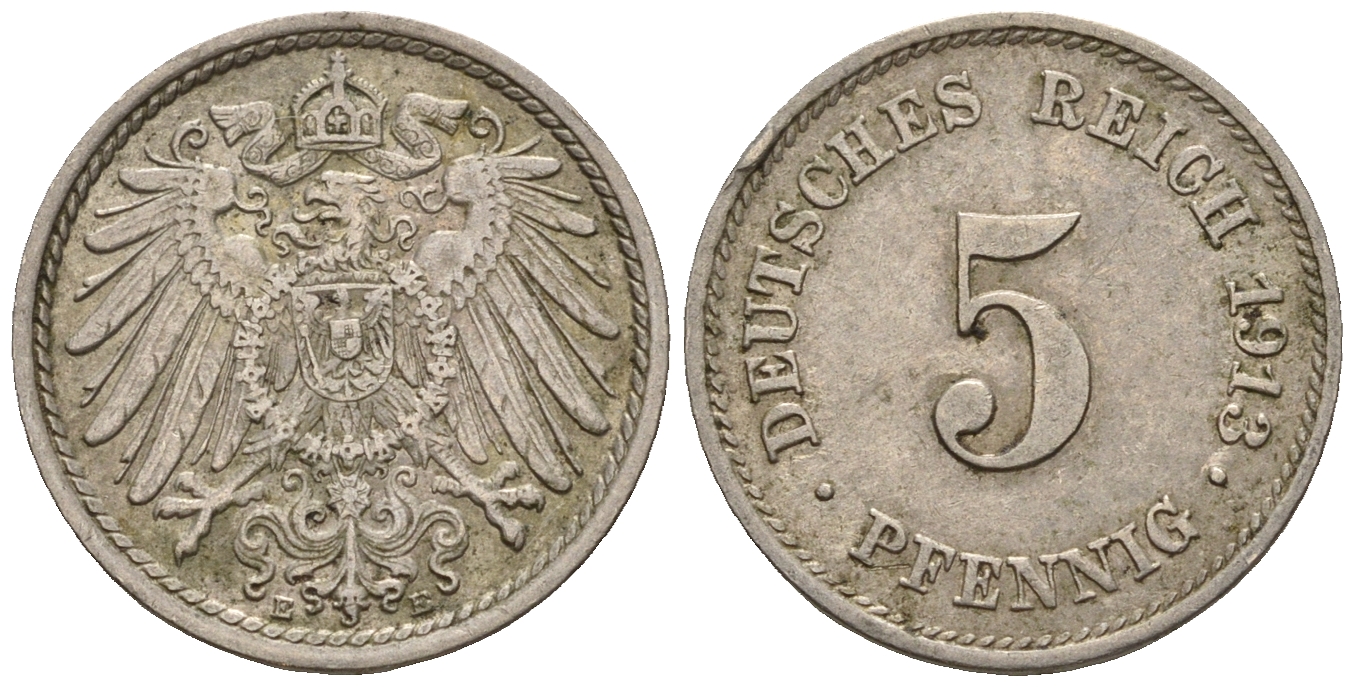 Германия 5 пфеннигов 1913 E, KM 11, J. 12 медно-никель 220-663