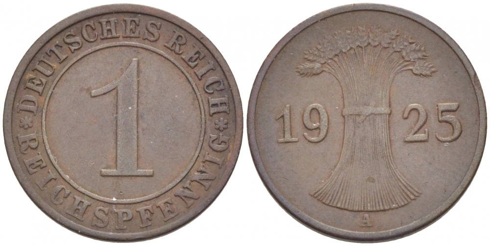 ГЕРМАНИЯ 1 РЕЙХСПФЕННИГ 1925 A KM 37 J. 313 бронза 116-755