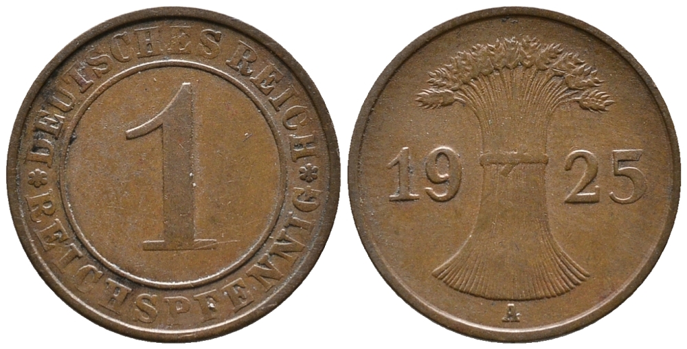 ГЕРМАНИЯ 1 РЕЙХСПФЕННИГ 1925 A KM 37, J. 313 бронза 39-864