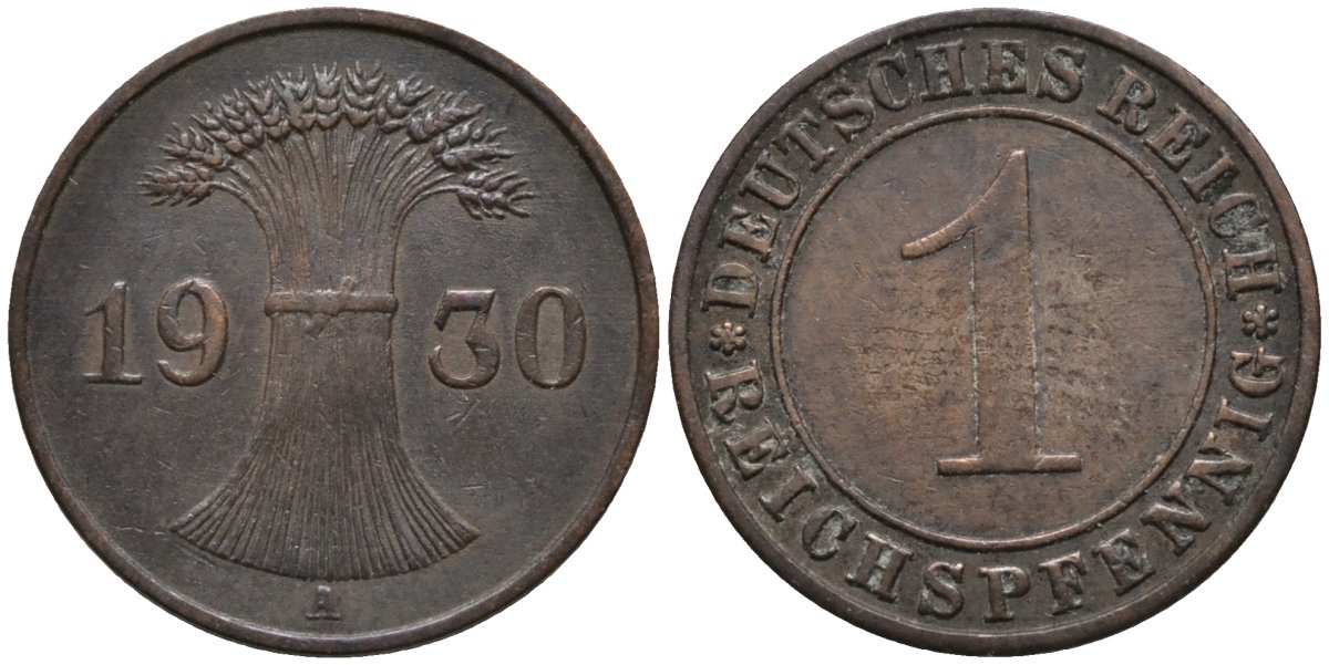 Германия 1 рейхспфенниг 1930 A KM 37 бронза 44-1249