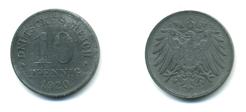 ГЕРМАНИЯ 10 ПФЕННИГОВ 1920 KM 26, J. 299 цинк 23-746
