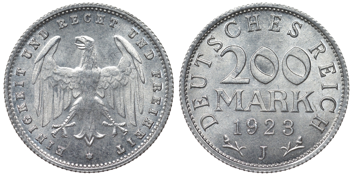 Германия 200 марок 1923 J KM 35, J. 304, Weege 22 алюминий 4121-1226