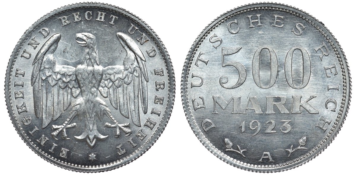 Германия 500 марок 1923 А KM 36, J.305 алюминий UNC 4587-535