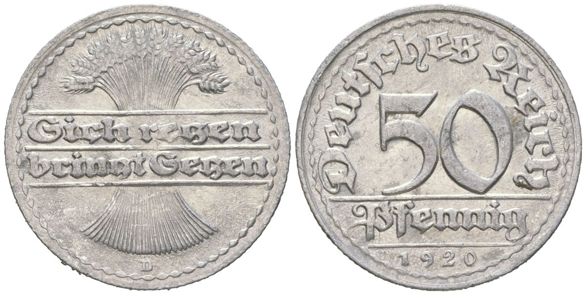 Германия 50 пфеннигов 1920 D KM 27 алюминий 31-121