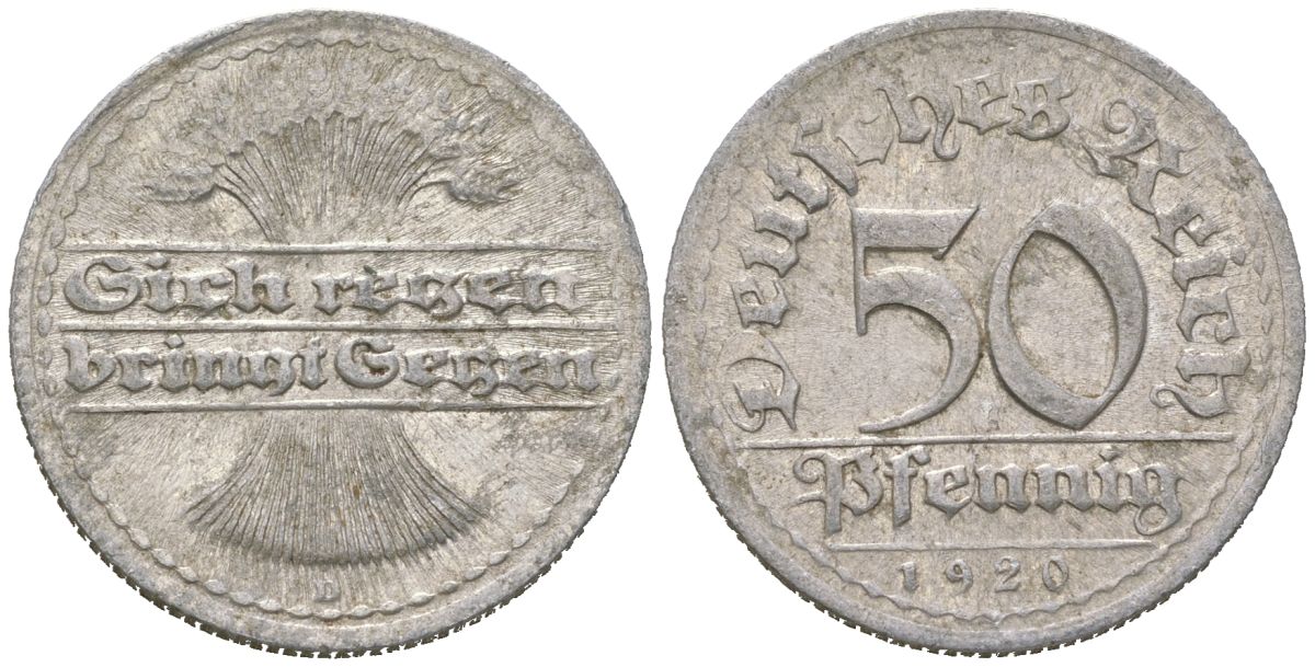 Германия 50 пфеннигов 1920 D KM 27 алюминий 35-1434