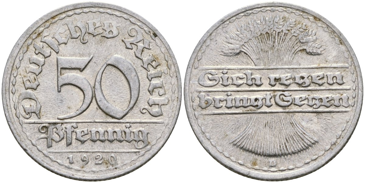 Германия 50 пфеннигов 1920 D KM 27 алюминий 4171-1043