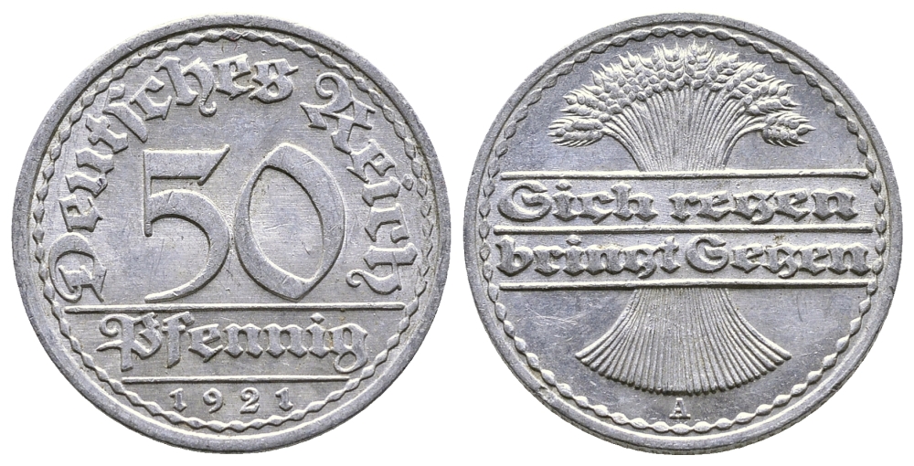 Германия 50 пфеннигов 1921 A KM 27, J.301, Weege 10 алюминий 4380-816