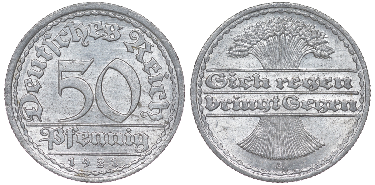 Германия 50 пфеннигов 1921 A KM 27, J. 301 алюминий aUNC 4114-552