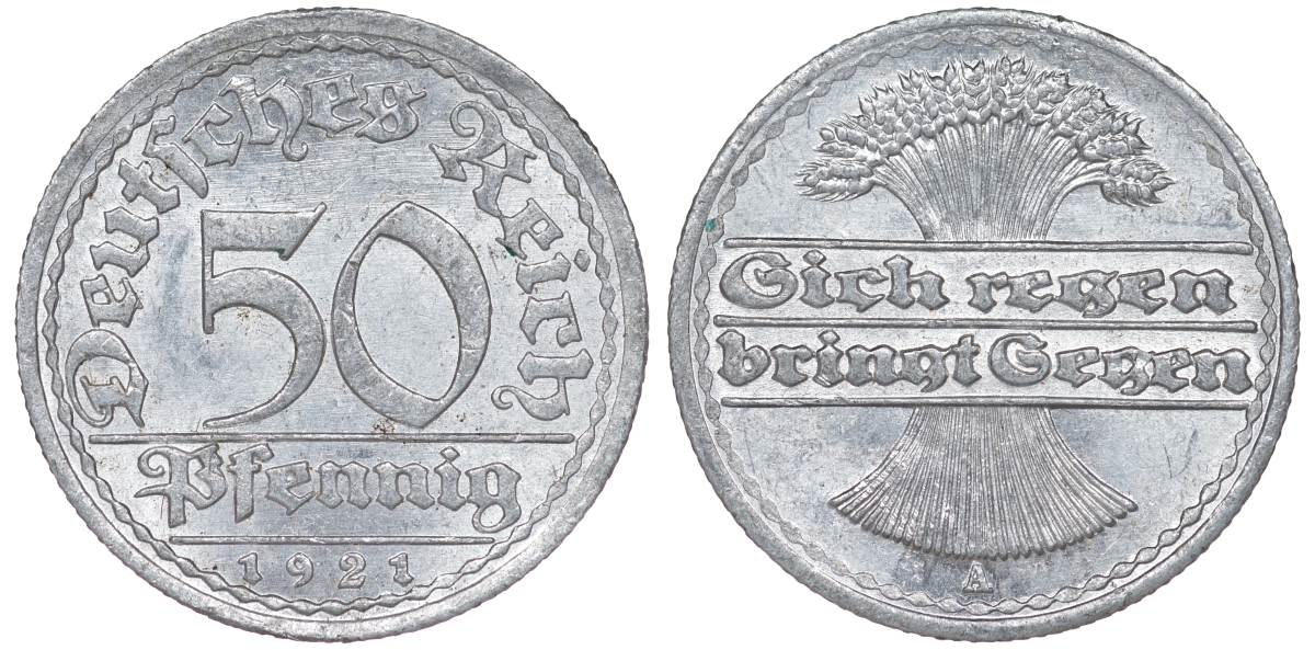 Германия 50 пфеннигов 1921 A KM 27, J. 301 алюминий aUNC 4114-833