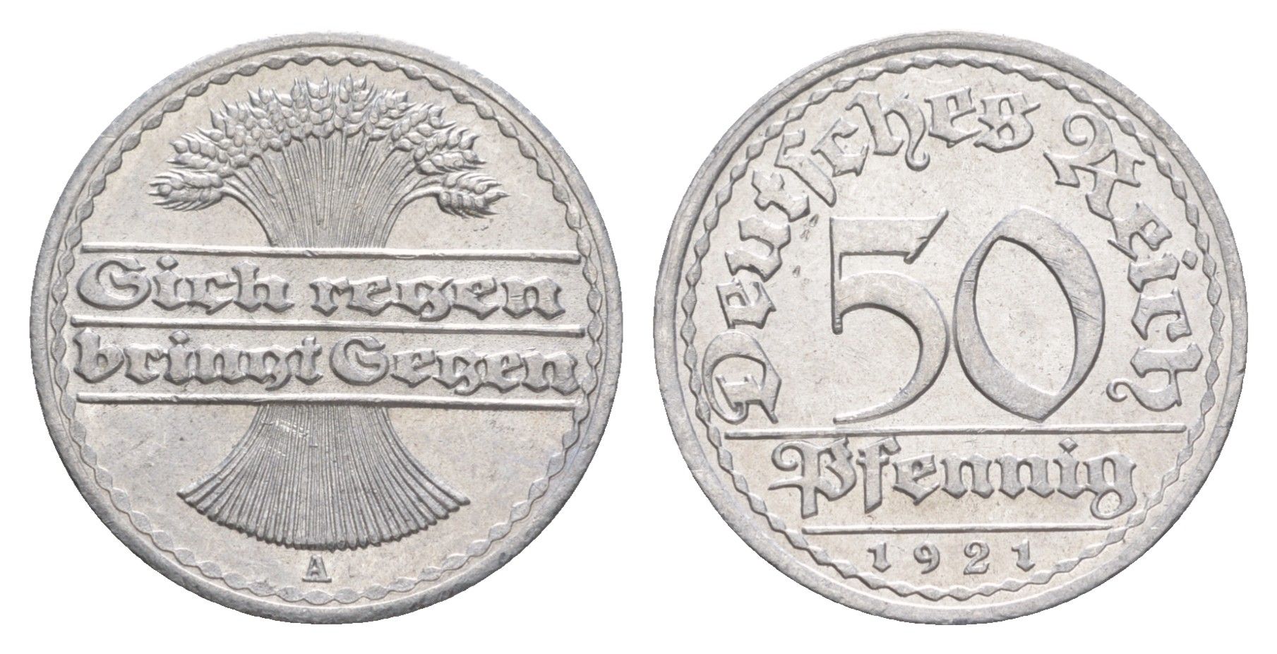 Германия 50 пфеннигов 1921 A KM 27, J. 301 алюминий aUNC 4646-1135