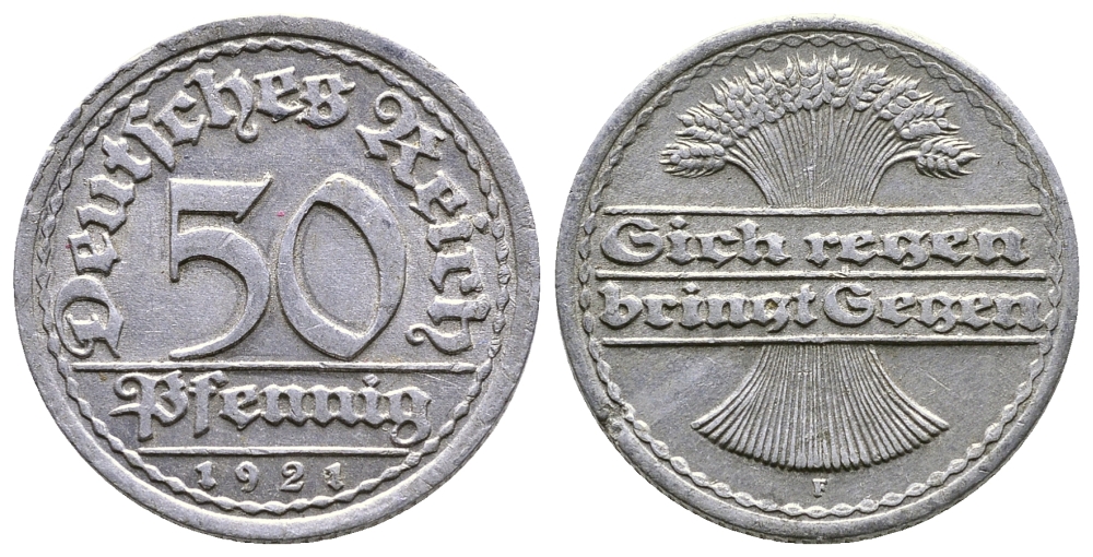ГЕРМАНИЯ 50 ПФЕННИГОВ 1921 F KM 27, J. 301 алюминий 4380-845