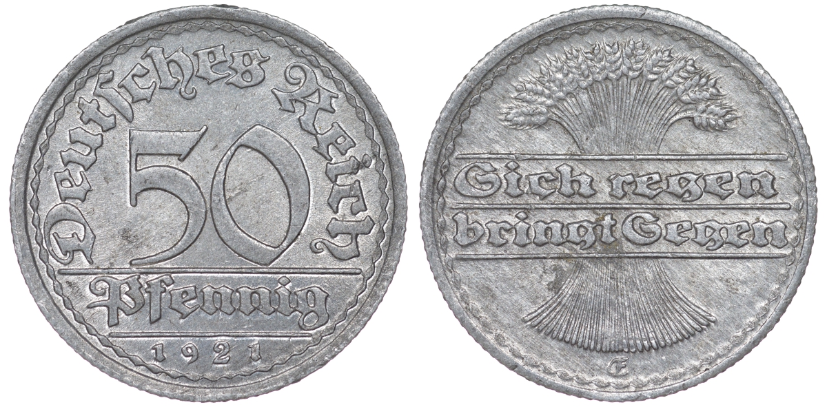 Германия 50 пфеннигов 1921 G KM 27, J. 301 алюминий 4114-852