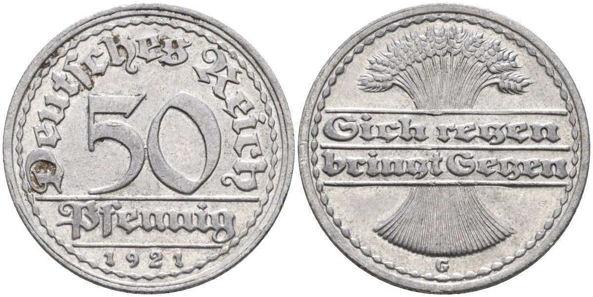 Германия 50 пфеннигов 1921 G KM 27, J.301, Weege 10 алюминий aUNC 4584-735