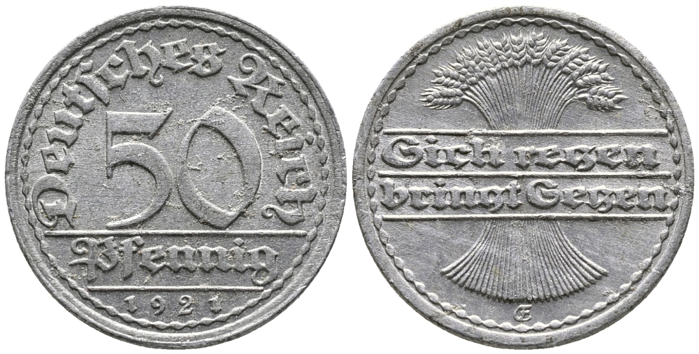 ГЕРМАНИЯ 50 ПФЕННИГОВ 1921 GF KM 27, J. 301 алюминий 24-1013