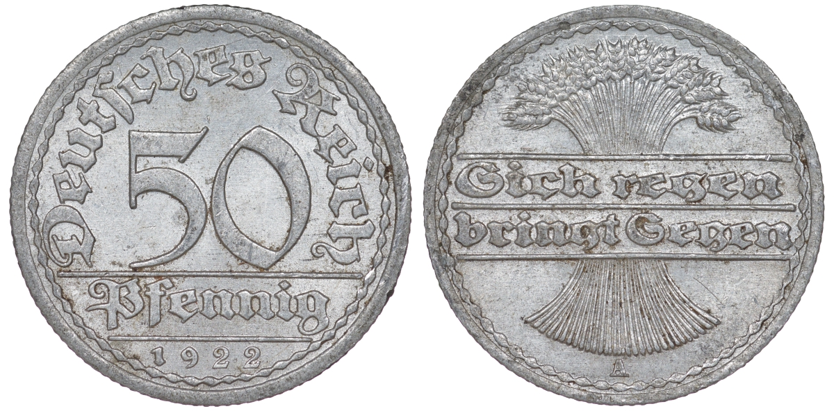 Германия 50 пфеннигов 1922 A KM 27, J. 301 алюминий 4148-723