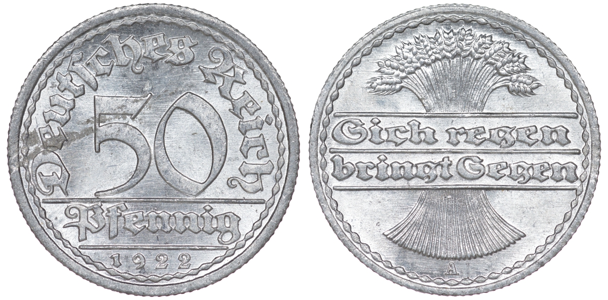 Германия 50 пфеннигов 1922 A KM 27, J. 301 алюминий aUNC 4114-945