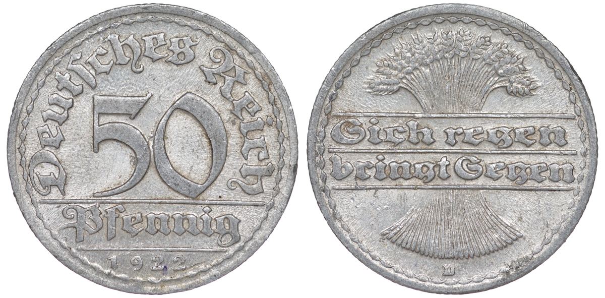 Германия 50 пфеннигов 1922 D KM 27, J. 301 алюминий 4159-537