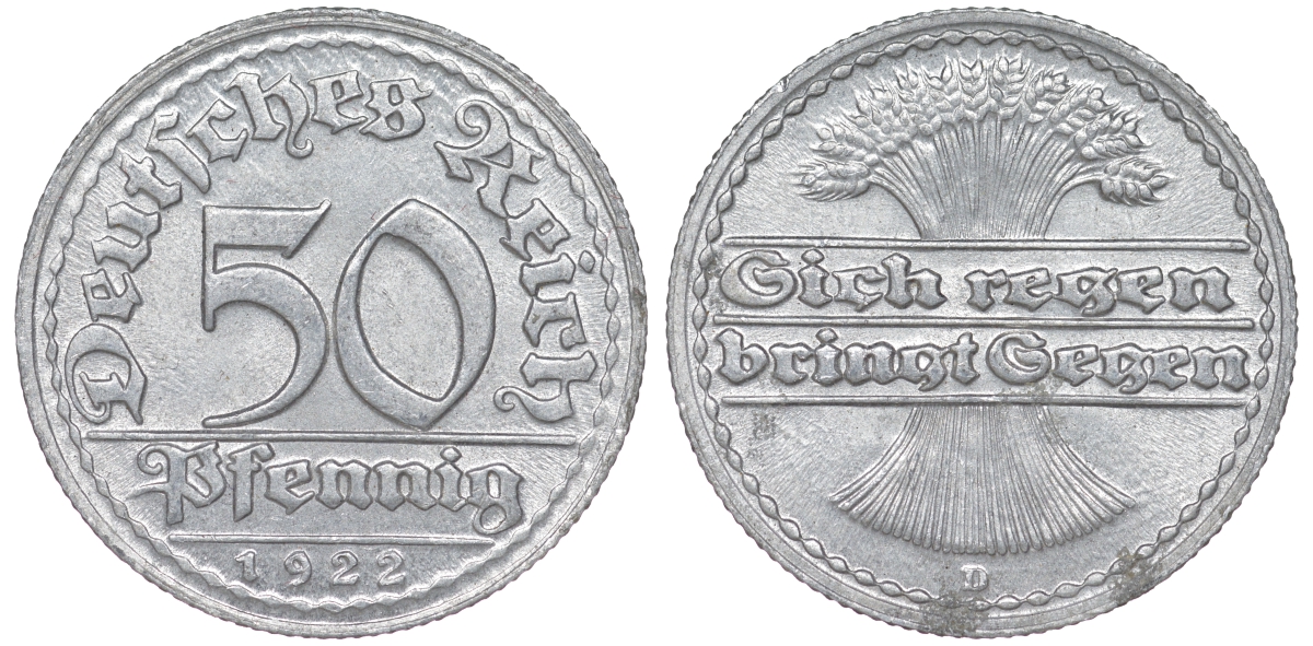 Германия 50 пфеннигов 1922 D KM 27, J. 301 алюминий 4159-956