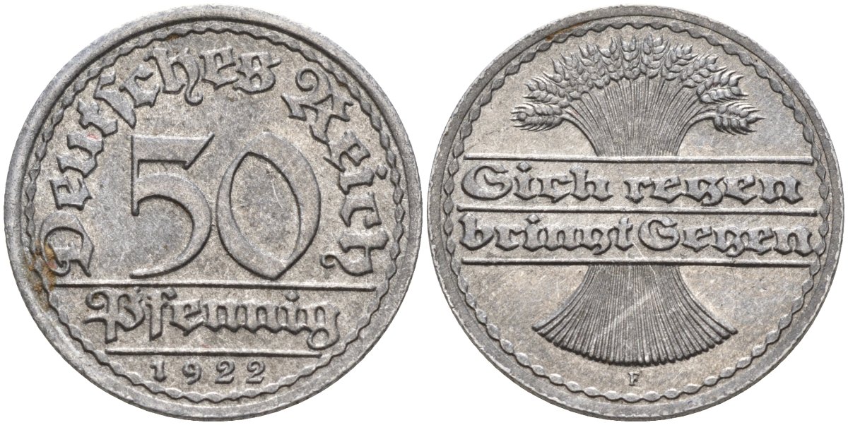 Германия 50 пфеннигов 1922 F KM 27, J.301, Weege 10 алюминий 4584-733