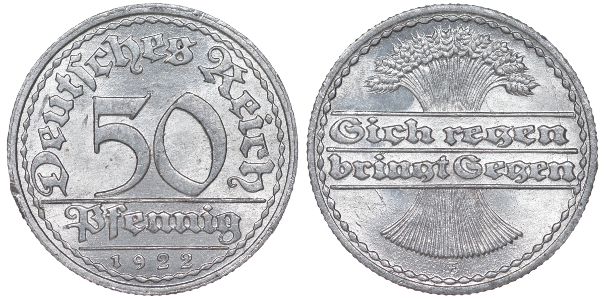 Германия 50 пфеннигов 1922 G KM 27, J. 301 алюминий aUNC 4145-1155