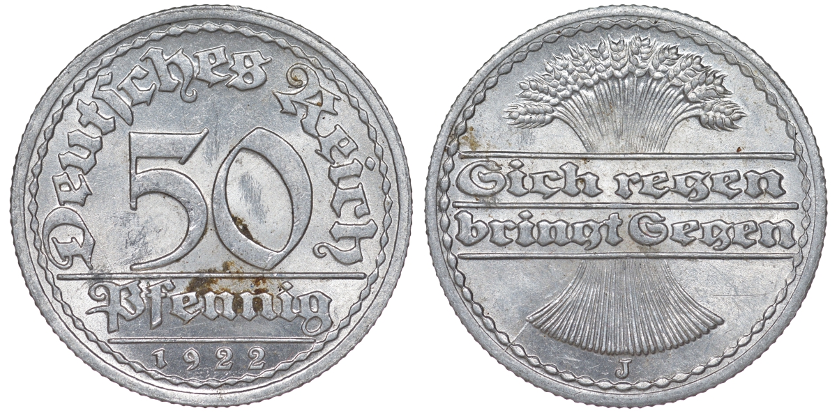 Германия 50 пфеннигов 1922 J KM 27, J. 301 алюминий 4145-1211