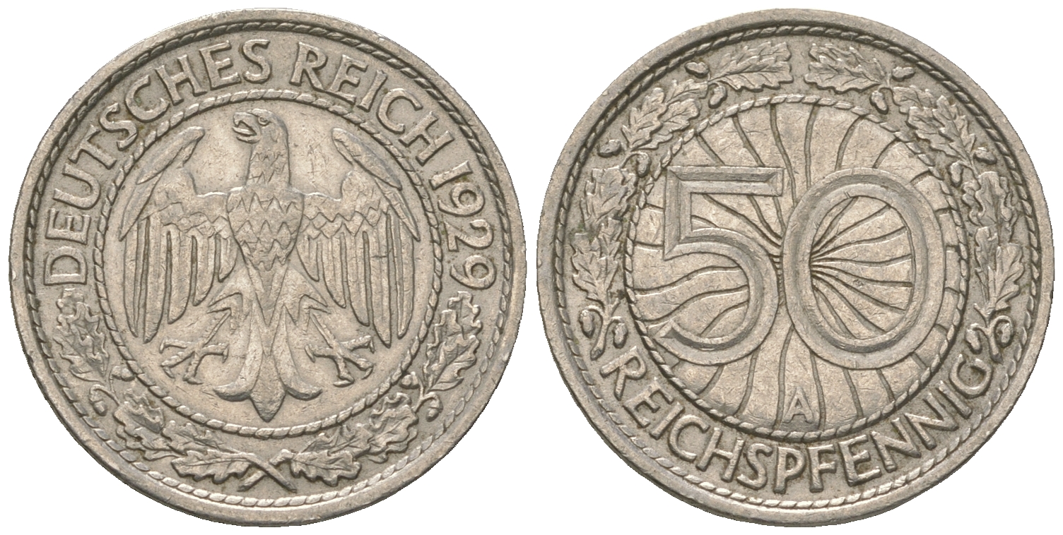 Германия 50 рейхспфеннигов 1929 А KM 49, J. 324 никель 4124-1228